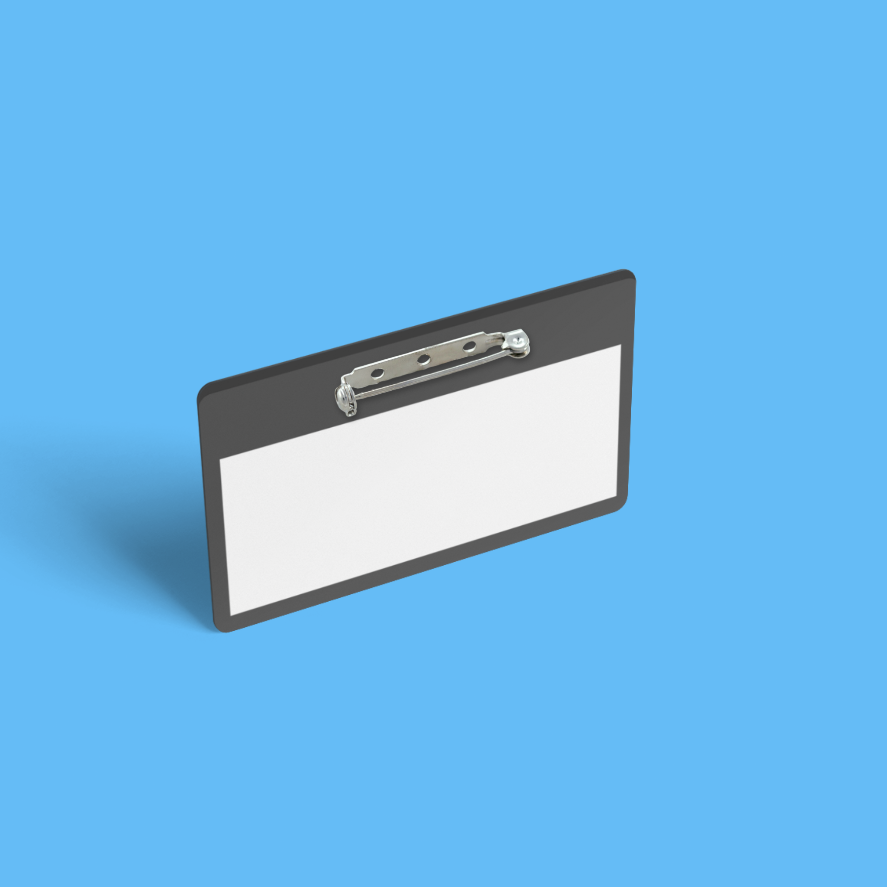 Our custom hand-made name tag features a vibrant design on a metal card, and the back adds an extra layer of durability with a secure locking bar pin. Simply add it to a light blue polo shirt – all you need for an effortless Lana transformation!