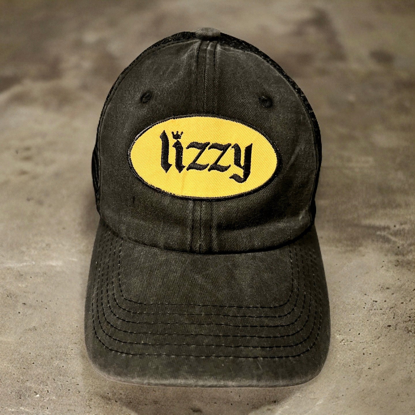 But here's the real star: the custom handmade Lizzy patch that pays tribute to her iconic Midas jacket. It's a fun twist that adds a totally unique vibe to your look, giving you that trailer park chic Lizzy Grant feel. It features a strap that adjusts to fit everyone. For those who like to wear ponytails, check out this hat!
